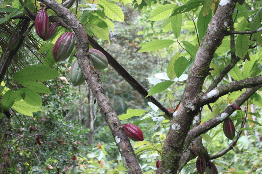 An hour after arriving on the island, Erick takes me on my inaugural tour, through the jungle and up to the islands small peak. He picks a ripe cacao fruit off a tree and slices it open with a machete, inviting me to remove the seeds and suck off the sweet lychee like flesh. He recites his impeccable knowledge of the land and I try with all my might to memorise it. Every medicinal property of noni. Every variation of frog. The complete history of chocolate production.