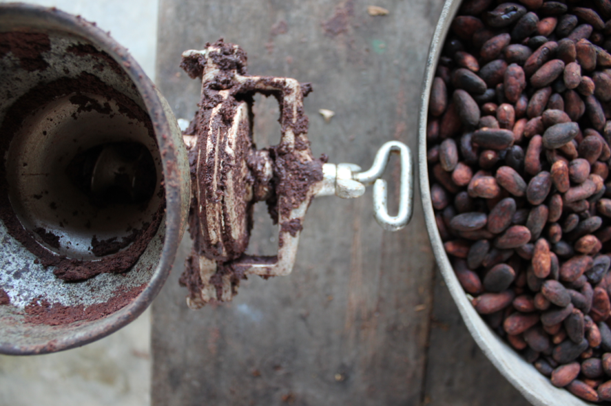 Turning Cacao fruit into chocolate.